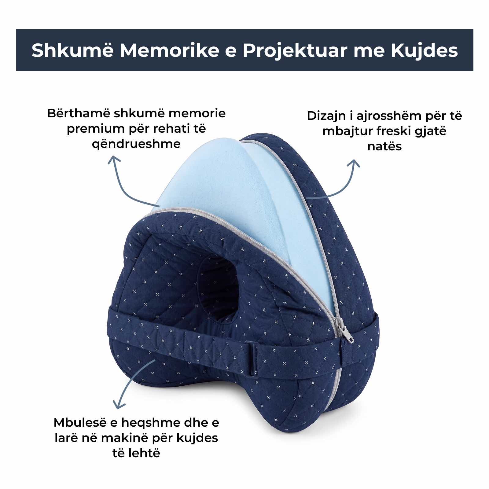 Edhe pse është projektuar për ata që flenë anash, forma e tij e gjithanshme përshtatet edhe për ata që flenë shpinë apo barkas, duke siguruar shtrirje dhe rehati më të mirë për të gjithë.