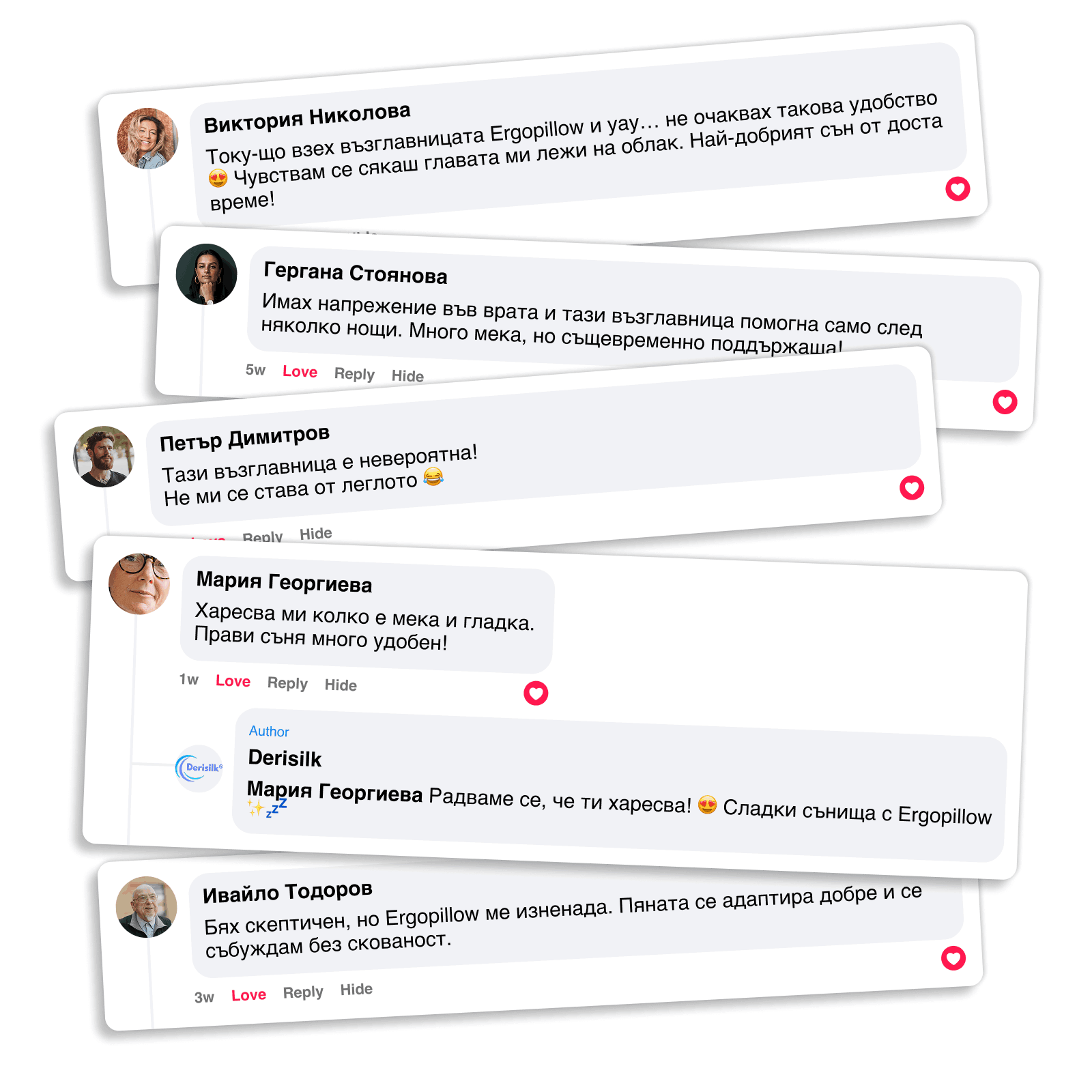 Убедени сме, че ще усетиш разликата с ERGOPILLOW още през първите нощи. Затова всяка поръчка е защитена с нашата гаранция за удовлетворение от 90 нощи. Ако не си напълно доволен, можеш да я върнеш в рамките на 90 дни след доставката и ще получиш пълно възстановяване на сумата.