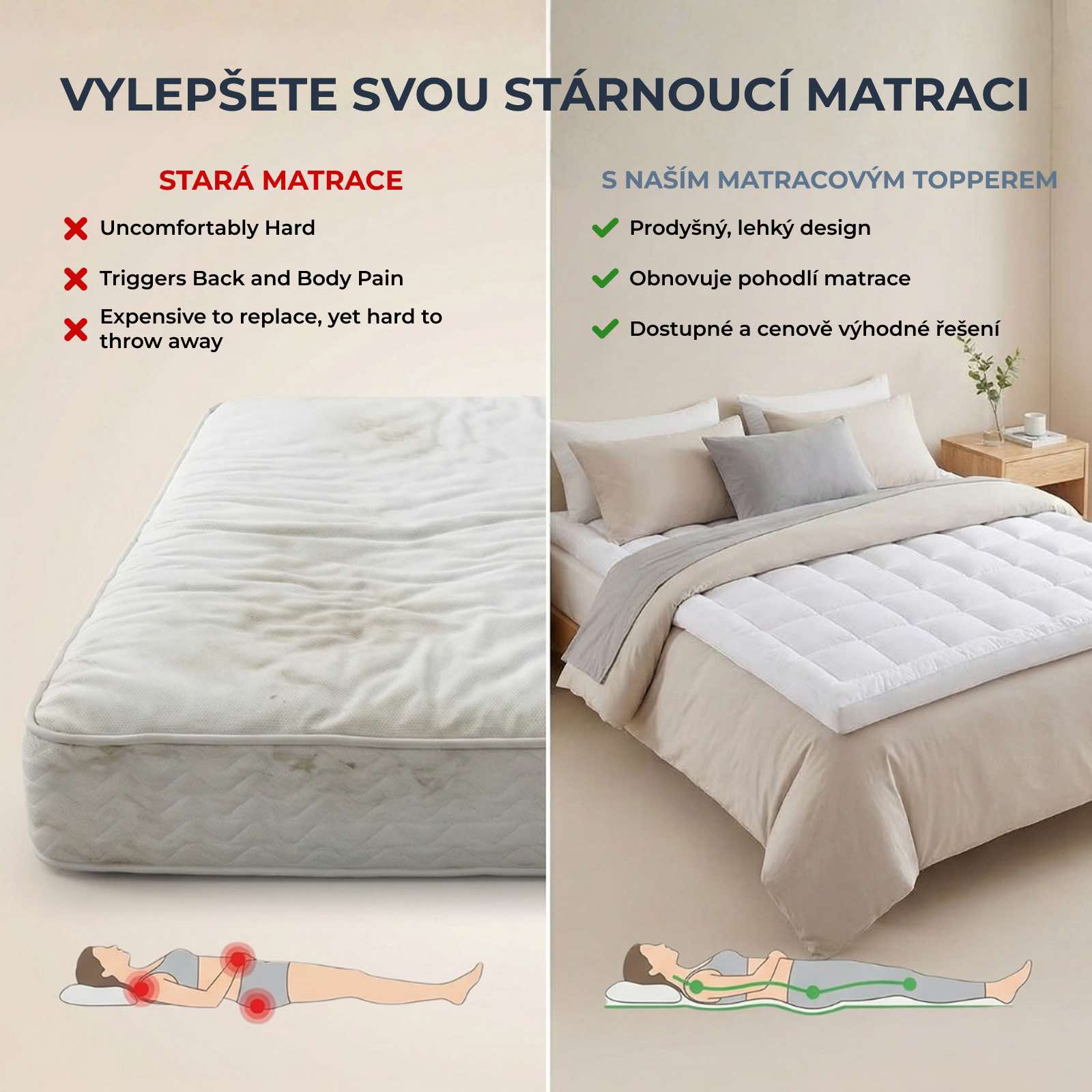- Promění jakoukoli matraci – přidá měkké pohodlí bez ztráty opory