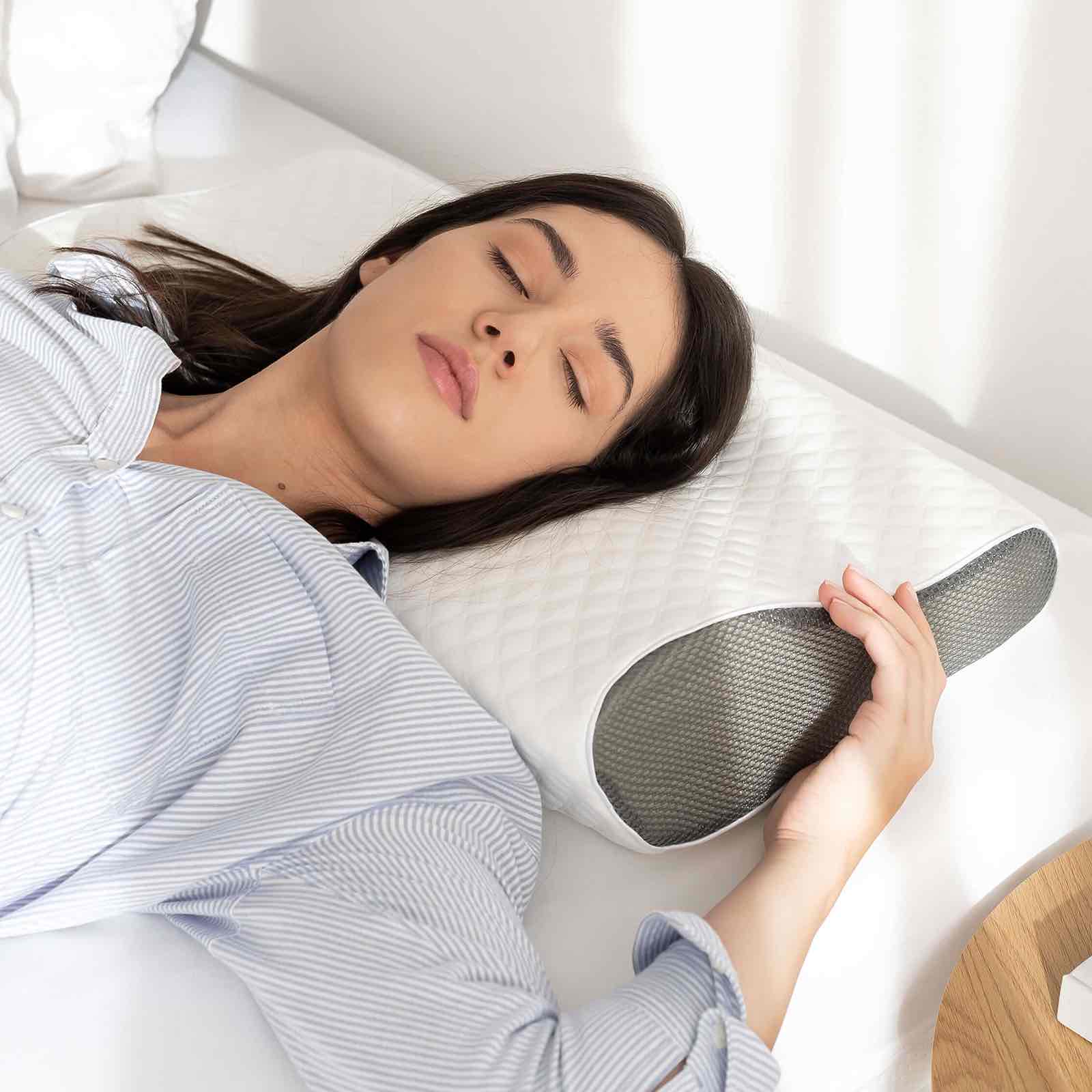 Eine der Hauptursachen für Nackenschmerzen, Schulternverspannungen und schlechten Schlaf ist eine falsche Kopf- und Nackenstütze in der Nacht. Wenn dein Kissen zu hoch, zu niedrig oder unter Druck seine Form verliert, stört das die Wirbelsäulenausrichtung, erhöht die Muskelspannung und verengt die Atemwege – so entsteht über Stunden hinweg Unbehagen im Schlaf.