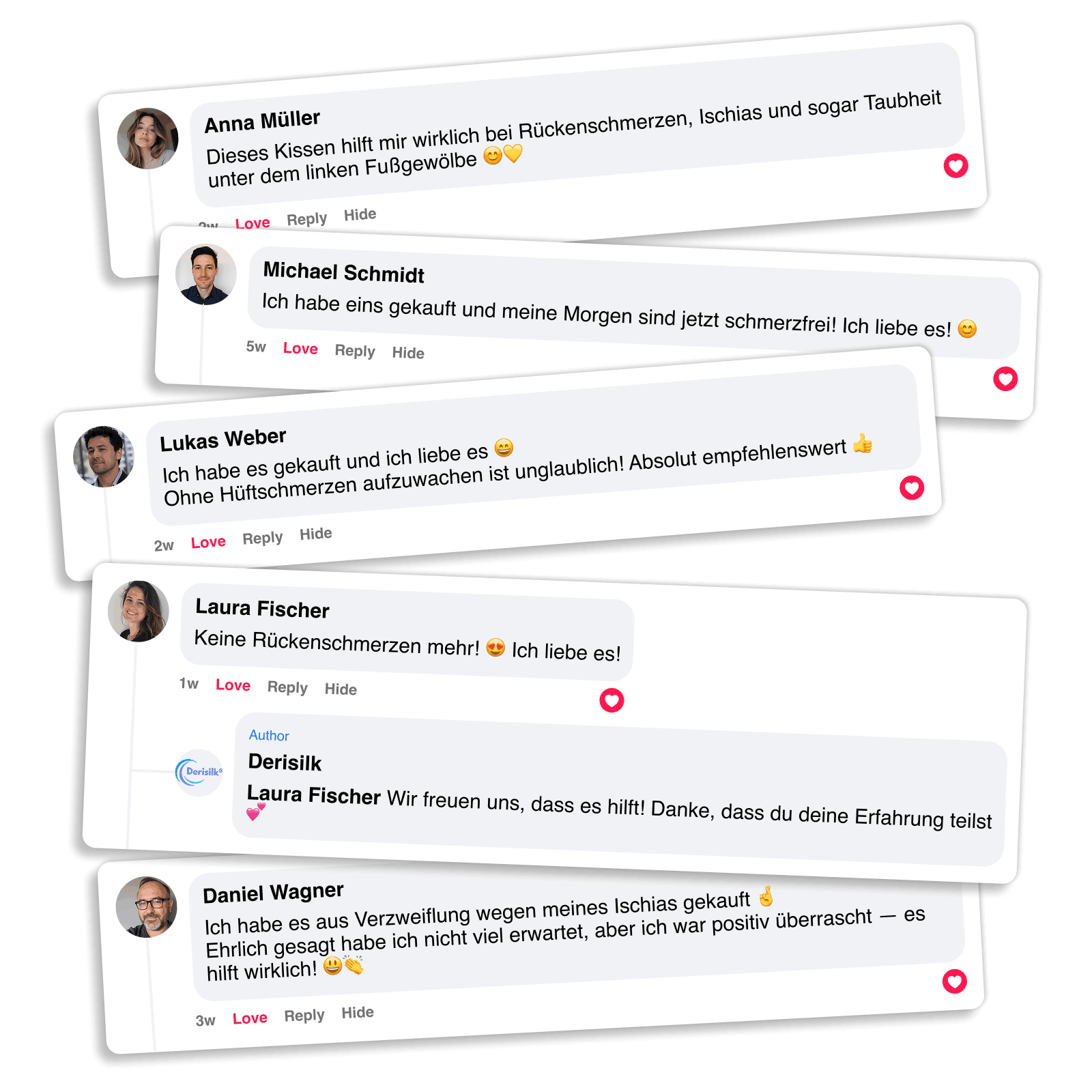 Ihr Feedback zeigt eine deutliche Verringerung von Gelenk- und Muskelschmerzen, insbesondere in Hüfte, unterem Rücken und Beinen. Außerdem berichten sie von besserer Schlafqualität, weniger Stress und einem insgesamt gesteigerten Wohlbefinden im Alltag.