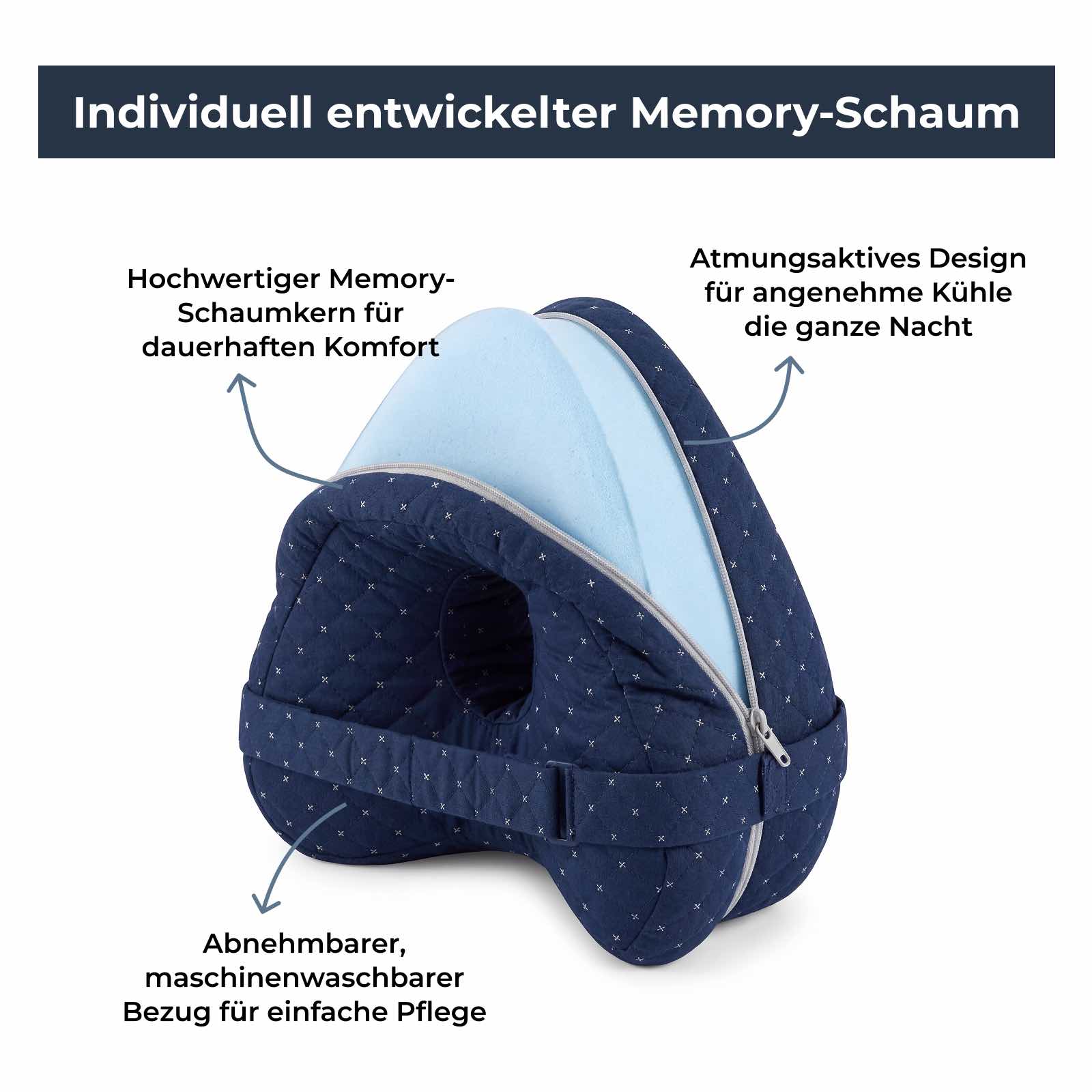 Unser Beinkissen besteht aus atmungsaktiven Materialien, die die Luftzirkulation fördern, Wärmestau verhindern und dafür sorgen, dass du die ganze Nacht angenehm kühl bleibst.