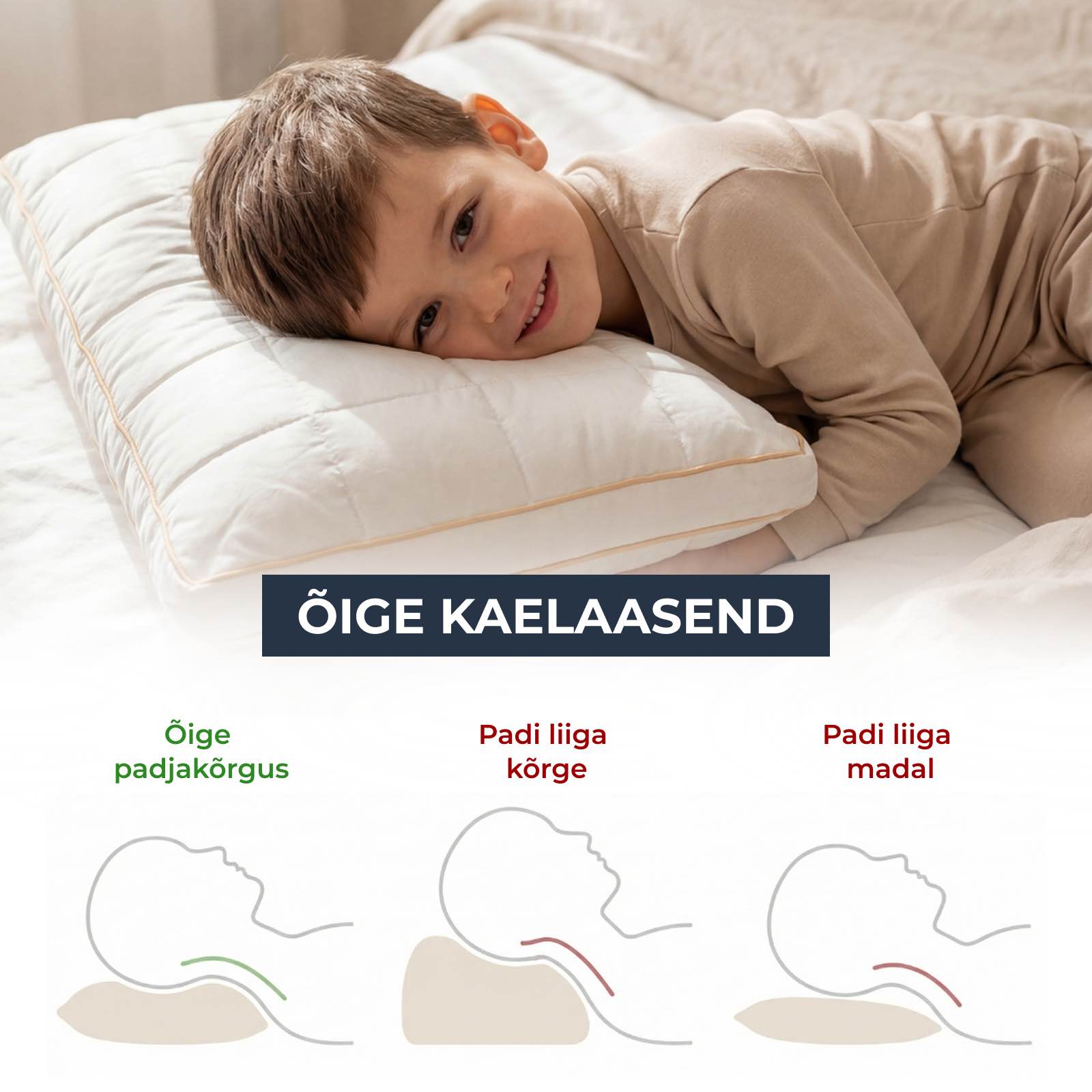 MINIDREAM on loodud selle probleemi lahendamiseks juba algusest peale. Selle reguleeritav täidis, ergonoomiline tugi ja hingavad looduslikud materjalid aitavad hoida tervislikumat kaela ja selgroo asendit, vähendada ülekuumenemist ning luua rahuliku ja mugava uneõhkkonna, mida lapsed vajavad sügavamaks ja taastavamaks puhkuseks.