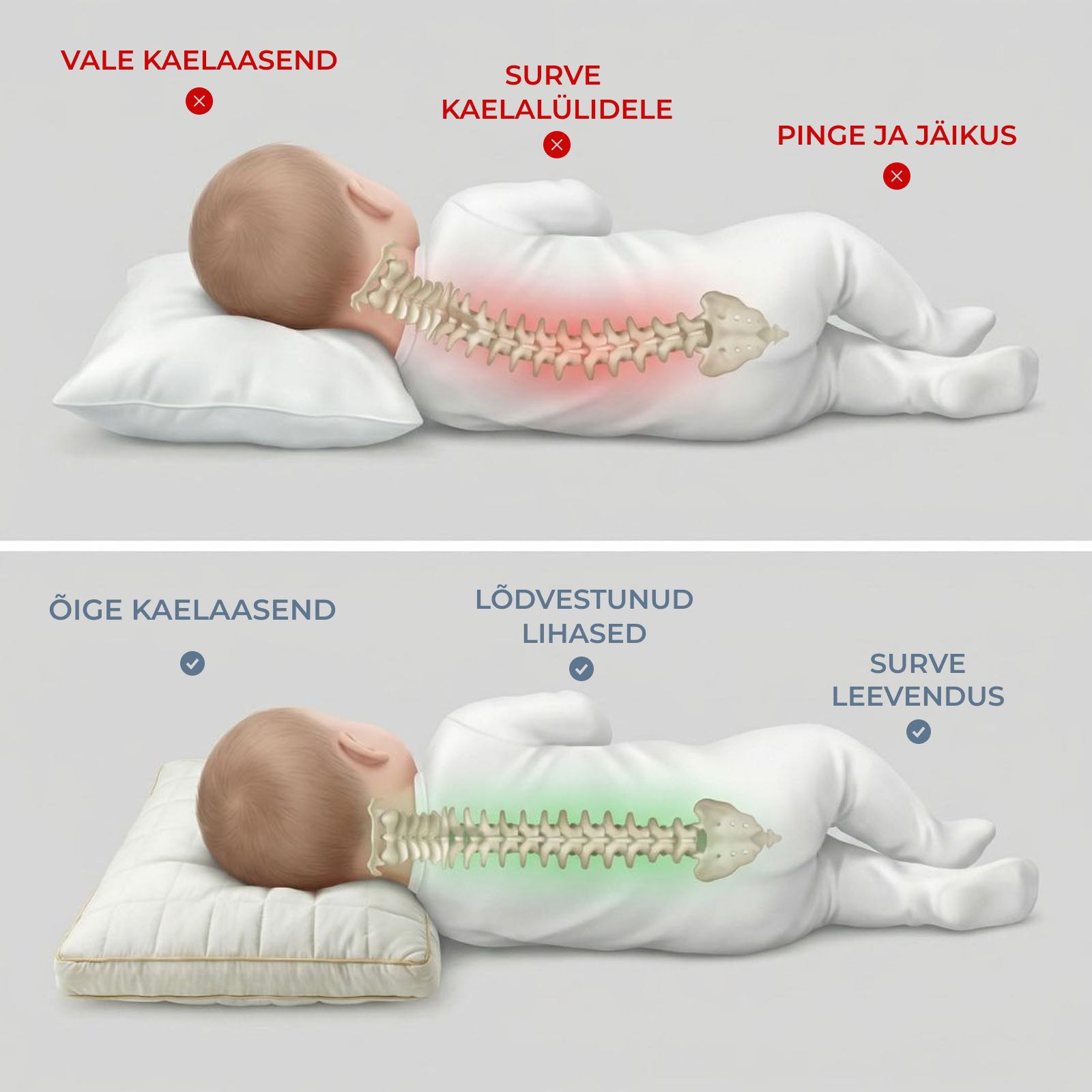 Enamik tavalisi laste patju on kas liiga lamedad, liiga paksud, liiga soojad või ei toeta kasvavat last piisavalt. See tähendab halba kaelaasendit, kinni jäänud soojust, rahutut und ja öid, mil laps viskleb, higistab ja ärkab ebamugavalt, mitte tõeliselt puhanuna.