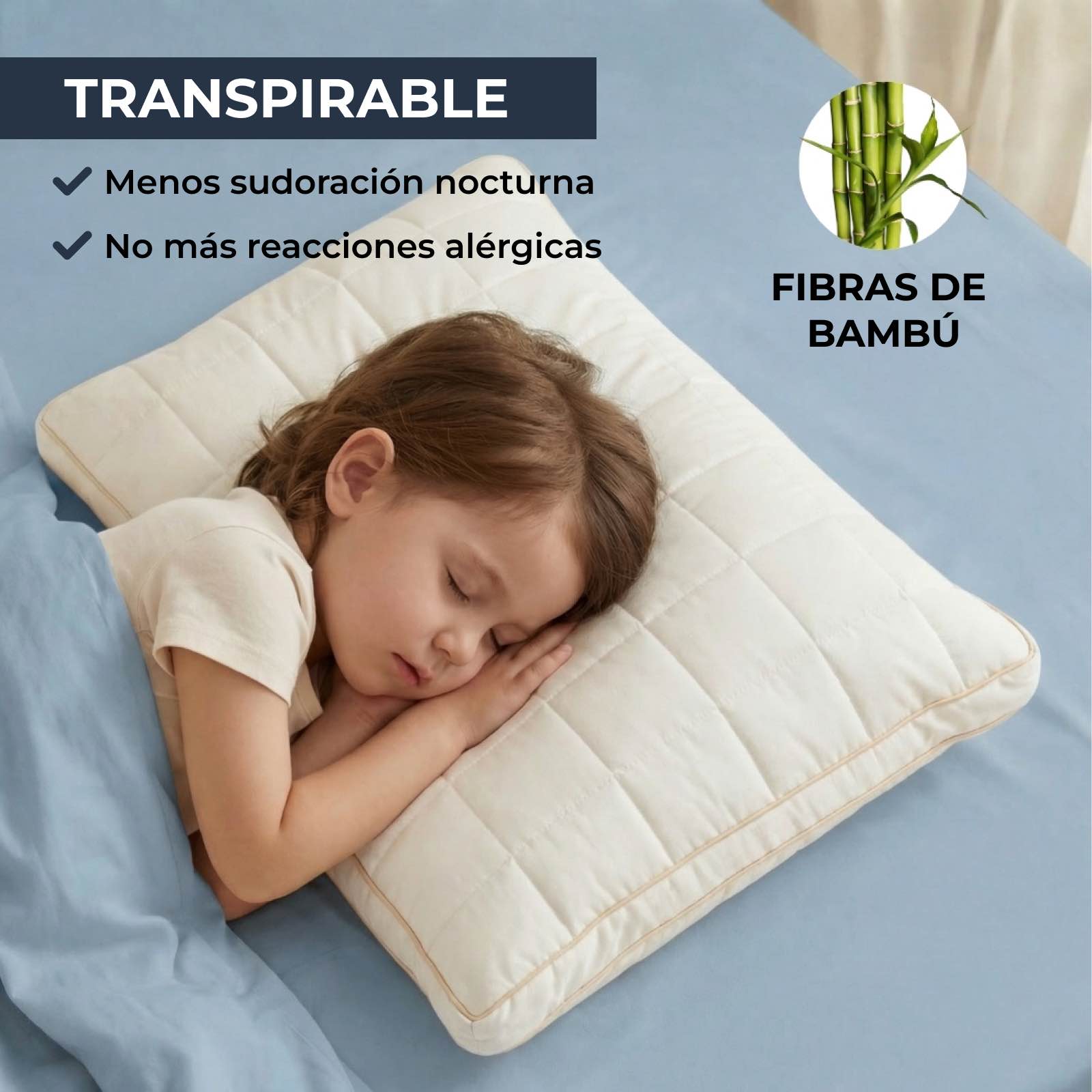 La mayoría de las almohadas infantiles son demasiado planas, voluminosas, calurosas o poco firmes para un niño en crecimiento. Eso provoca una mala postura del cuello, calor acumulado, sueño inquieto y noches en las que tu hijo se revuelve, suda y se despierta incómodo en lugar de realmente descansado.