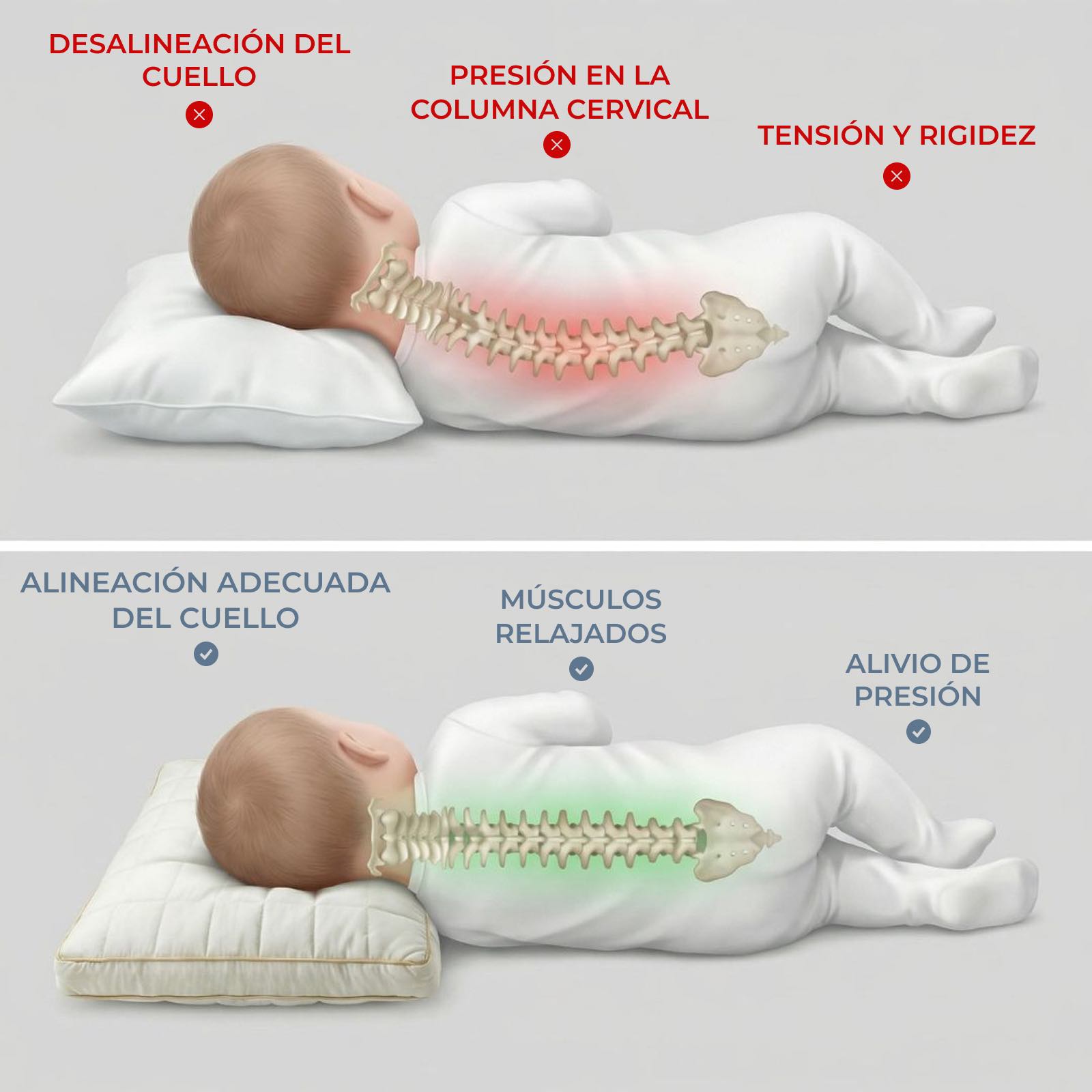 - Falta de apoyo adecuado para el cuello y la columna durante el sueño