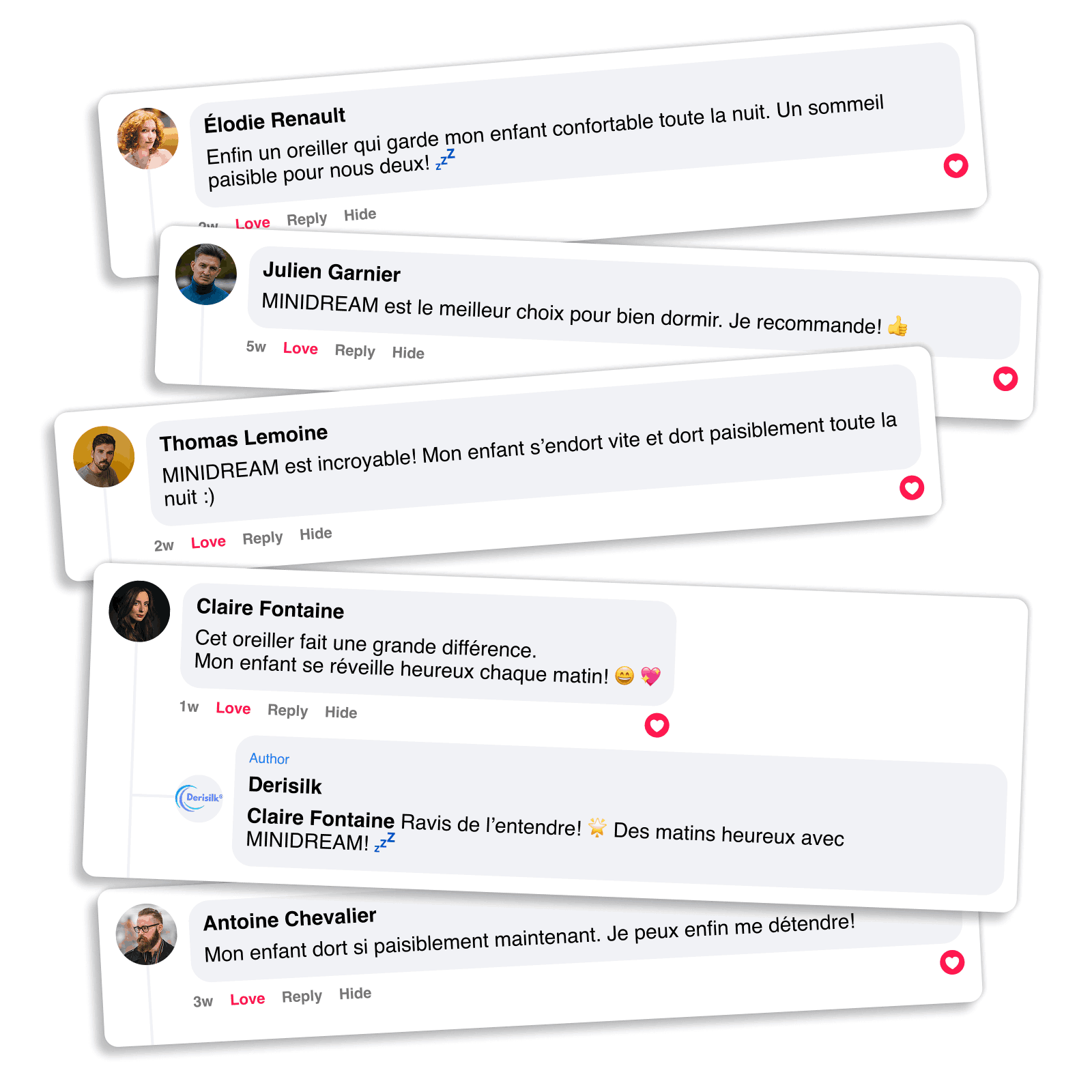 Les parents choisissent MINIDREAM car il aide à résoudre plusieurs problèmes de sommeil à la fois : oreiller mal adapté, surchauffe, inconfort et soutien qui s’affaiblit avec le temps. Le résultat : un oreiller plus doux, plus frais et qui continue de s’adapter aux besoins de votre enfant au fil du temps, au lieu de devenir inutile après quelques mois.