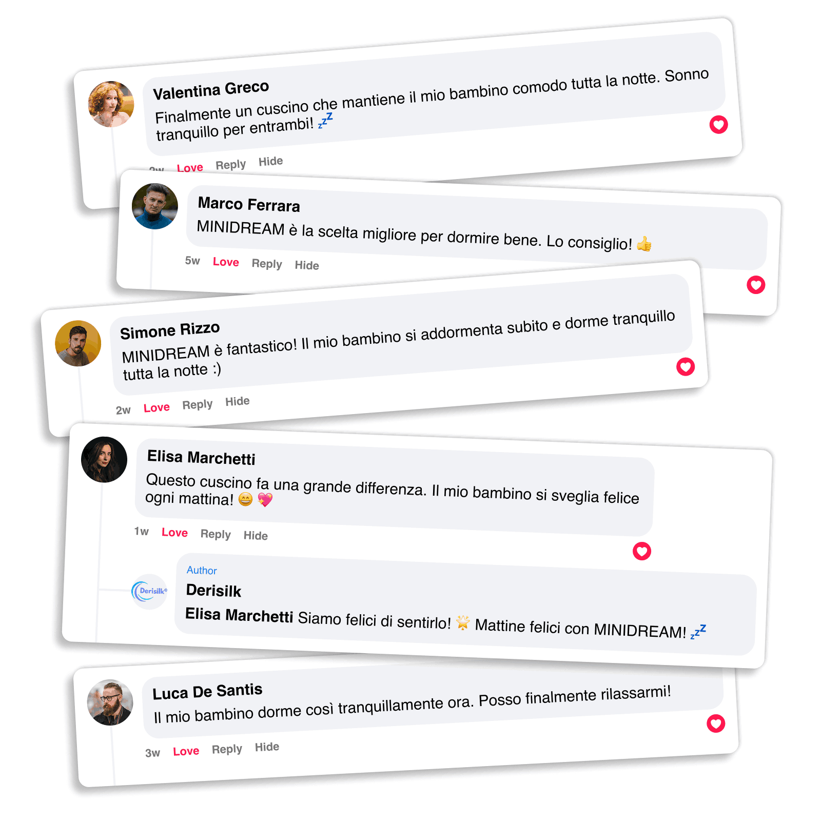 I genitori scelgono MINIDREAM perché aiuta a risolvere diversi problemi del sonno in una volta sola: cuscini poco adatti, eccessivo calore, disagio e supporto che si perde nel tempo. Il risultato è un cuscino più morbido, più fresco e capace di adattarsi alle esigenze del tuo bambino nel tempo, invece di diventare inutile dopo pochi mesi.