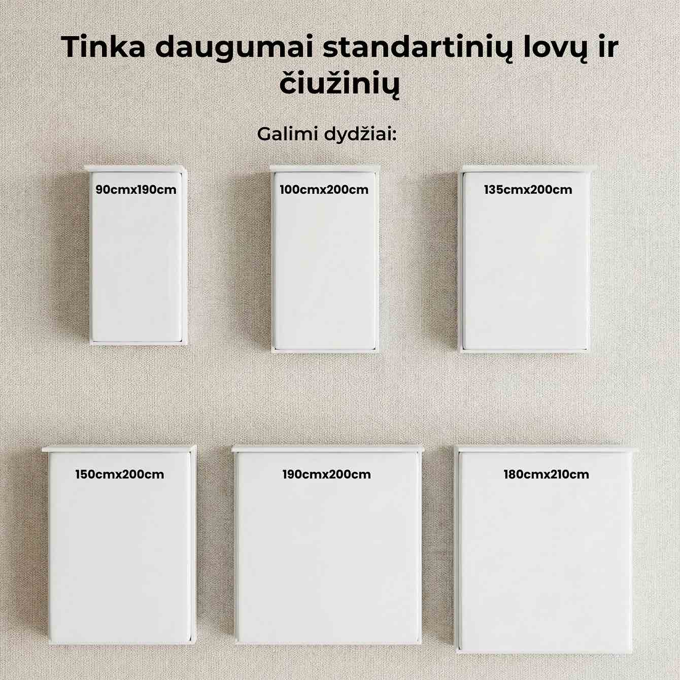 CLOUDREAM tinka standartiniams čiužiniams ir yra kelių dydžių, todėl lengvai priderinsite tinkamą antčiužinį prie savo lovos.