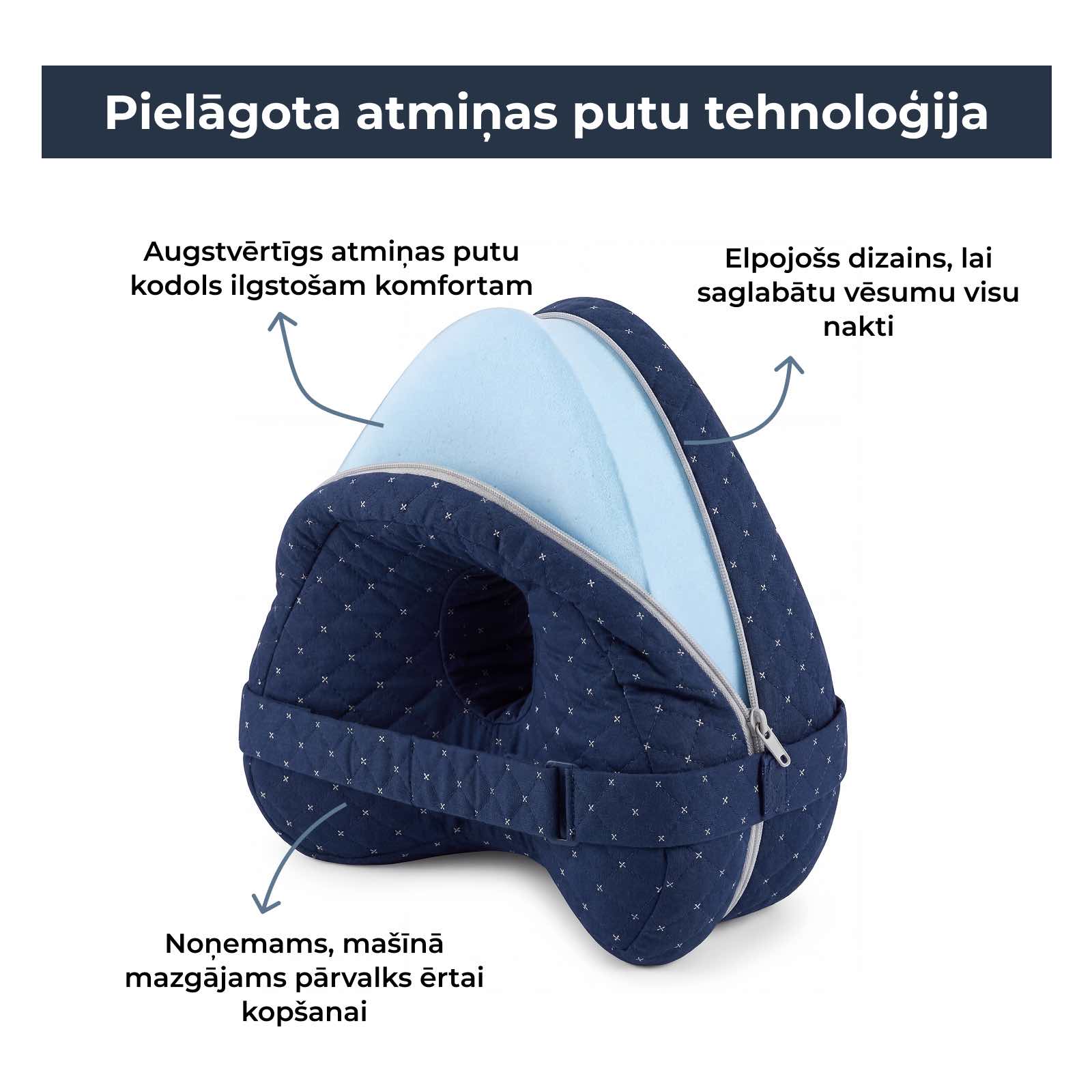 Mūsu kāju spilvens ir izgatavots no elpojošiem materiāliem, kas veicina gaisa cirkulāciju, novērš siltuma uzkrāšanos un palīdz saglabāt vēsumu visu nakti.