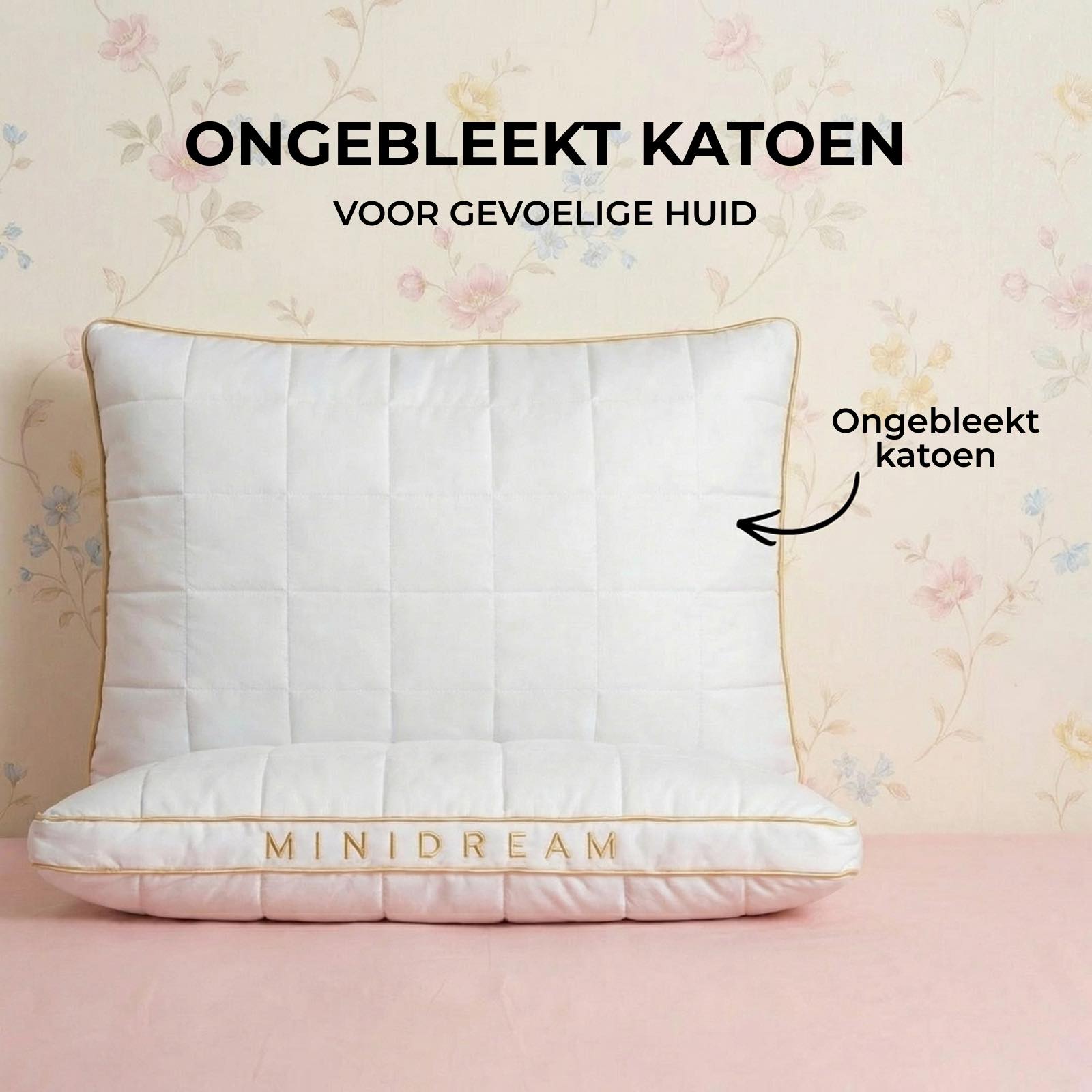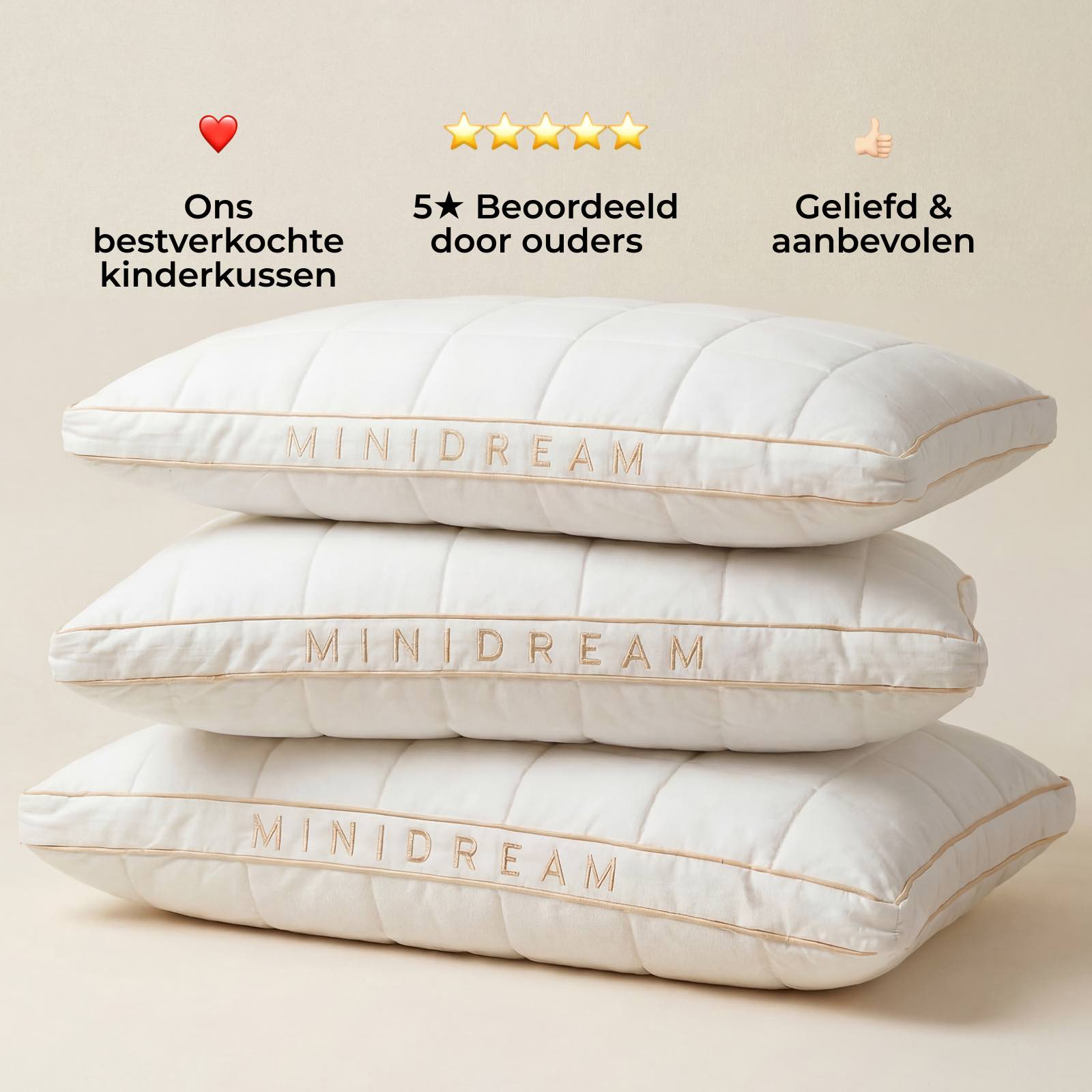 MINIDREAM is vanaf het begin ontworpen om dat probleem op te lossen. De verstelbare vulling, ergonomische ondersteuning en ademende, natuurlijke materialen helpen een gezonde houding van nek en wervelkolom te behouden, oververhitting te verminderen en een rustige, comfortabele slaapomgeving te creëren die kinderen nodig hebben voor een diepere, herstellende slaap.
