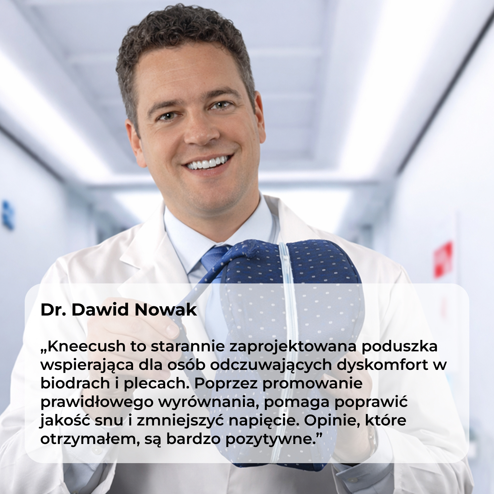 Najnowszy model poduszki KNEECUSH przeszedł gruntowną ocenę i zyskał poparcie wielu specjalistów z zakresu fizjoterapii, chiropraktyki i rehabilitacji, a także ich pacjentów.