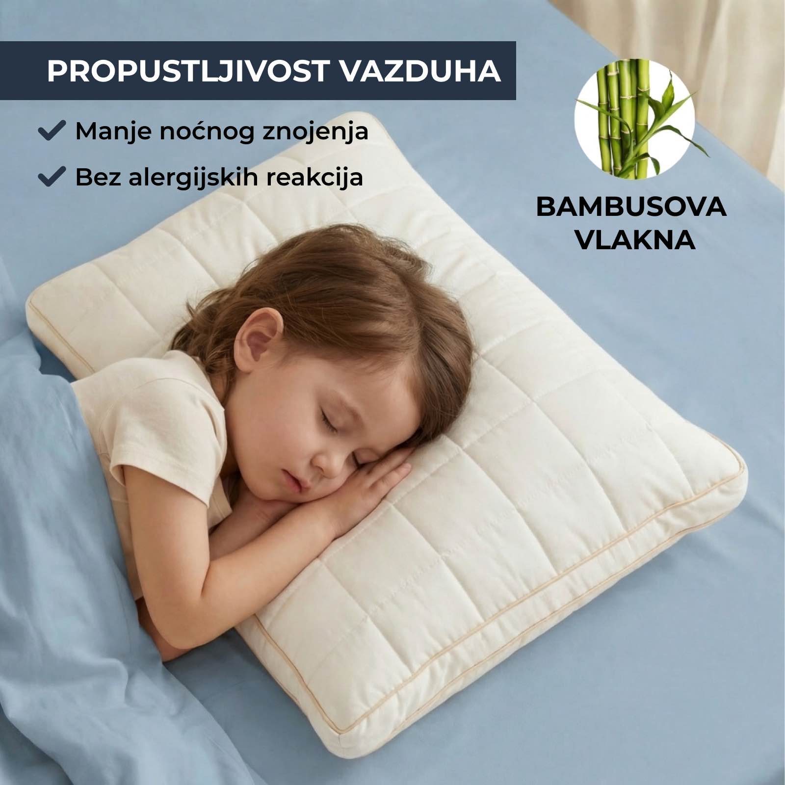 Većina običnih dečjih jastuka je ili previše ravna, preglomazna, pretopla ili jednostavno ne pruža dovoljnu podršku za rastuće dete. To dovodi do lošeg položaja vrata, zadržavanja toplote, nemirnog sna i noći tokom kojih se dete prevrće, znoji i budi neudobno, umesto da se zaista odmori.