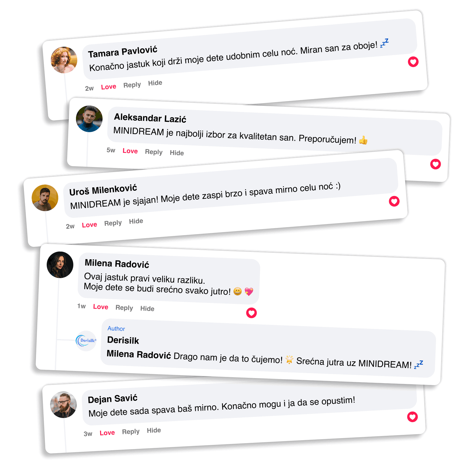 Roditelji biraju MINIDREAM jer pomaže da se reši više problema sa spavanjem odjednom: neodgovarajući jastuk, pregrevanje, neudobnost i kratkotrajna potpora. Rezultat je jastuk koji je mekši, svežiji i koji se vremenom prilagođava potrebama tvog deteta, umesto da postane beskoristan posle nekoliko meseci.