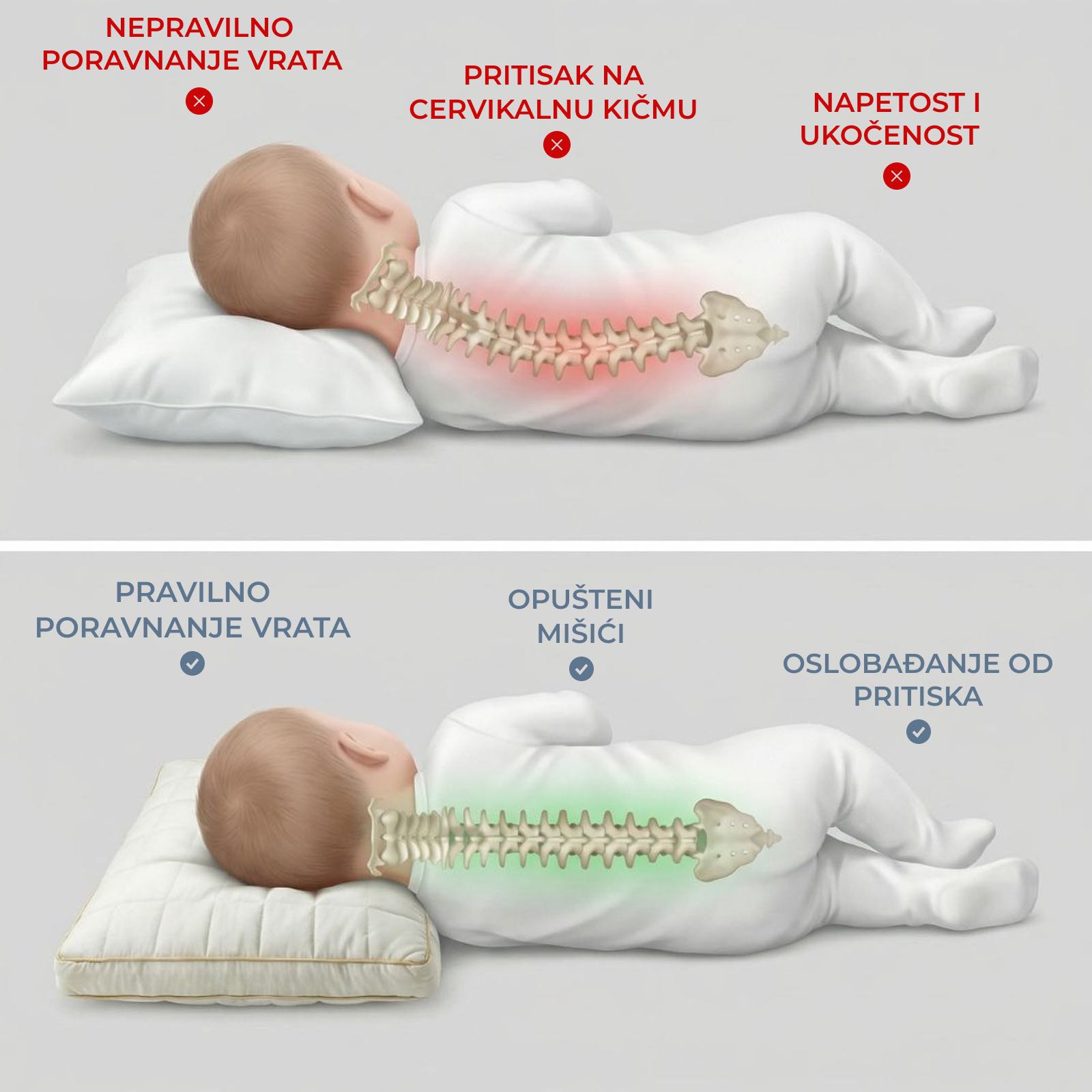 Jedan od glavnih uzroka nemirnog i nekvalitetnog sna kod male dece je jastuk koji ne odgovara njihovoj veličini, položaju spavanja ili fazi rasta. Kada je jastuk previsok, pretvrd, pretopao ili bez dovoljno potpore, remeti prirodan položaj tela, zadržava vlagu i otežava detetu da se potpuno opusti tokom noći.