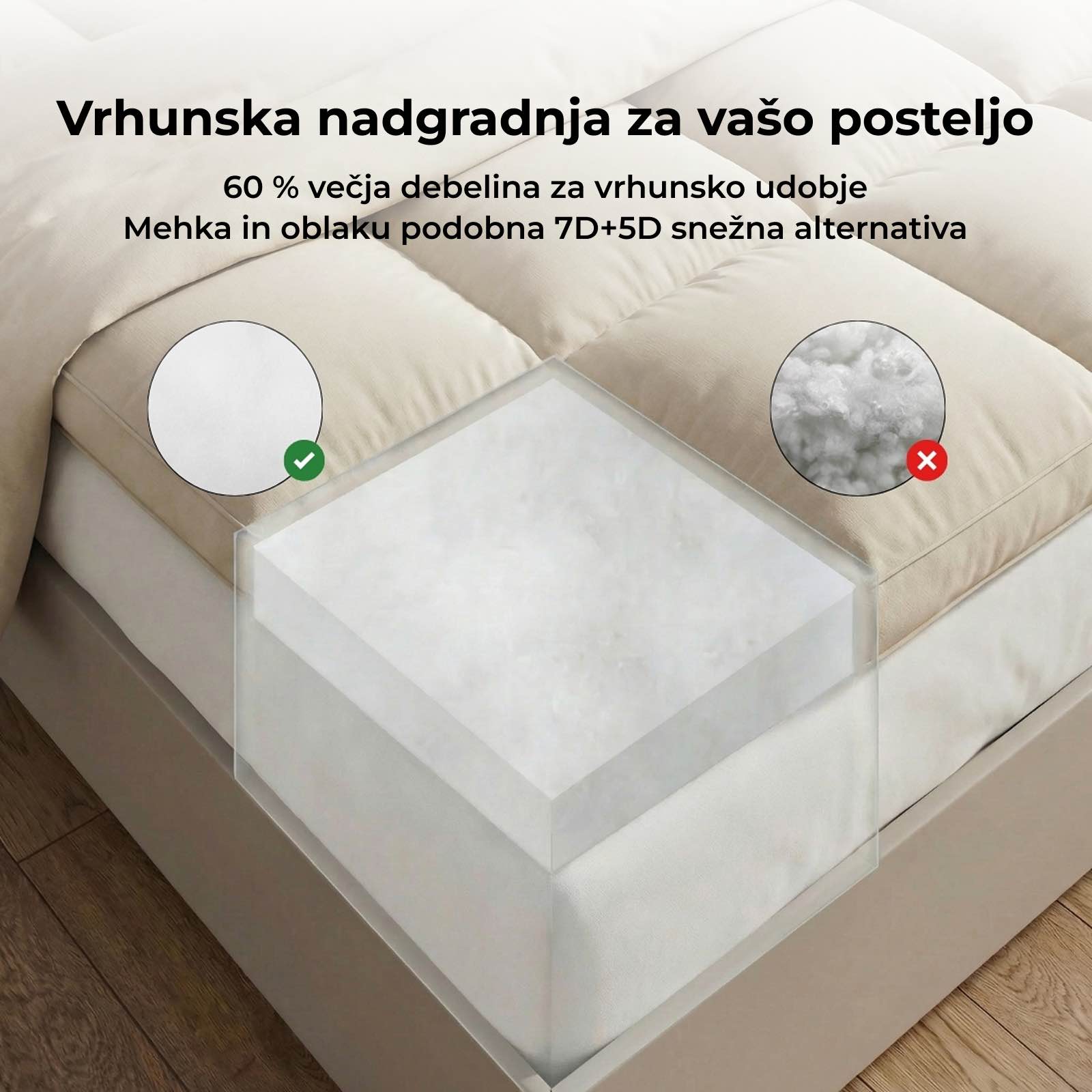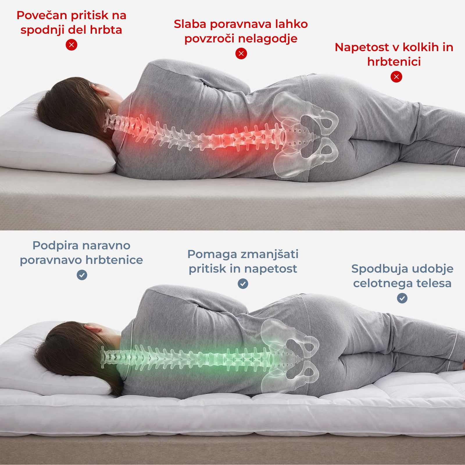 Za razliko od klasičnih nadvložkov, ki le dodajo mehkobo, je CLOUDREAM zasnovan z ergonomsko večconsko strukturo za razbremenitev pritiska, ki pomaga zmanjšati bolečino, izboljšati udobje med spanjem in spodbuditi globljo nočno regeneracijo.